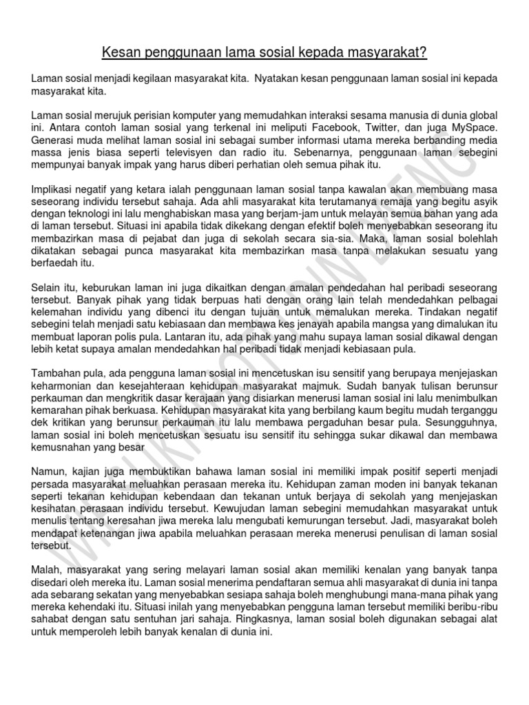 . Pesan yang di sampaikan tidak hanya untuk satu orang namun bisa ke berbagai banyak orang. Selain itu kebaikan media sosial adalah kamu bebas berpendapat dan bebas untuk. Karangan Tentang Media Sosial Spm - Karangan Punca Punca Gejala Sosial Dalam Kalangan Remaja Hd.